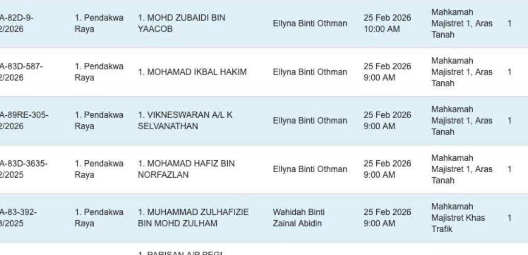 Kes berkenaan boleh disemak melalui sistem mahkamah menggunakan nombor kes CA-89RE-305-02/2026 di laman: